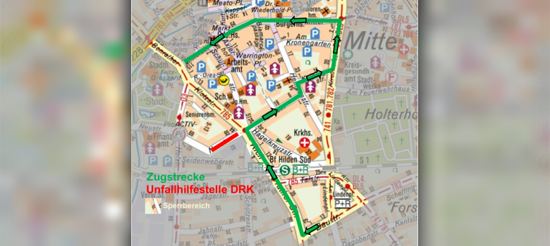 Damit der Rosenmontagszug reibungslos über die oben genannten Straßen ziehen kann, leitet die Stadt Hilden sowohl den Straßen- als auch den Busverkehr von 12.00 bis ca. 18.00 Uhr weiträumig um. Umleitungen werden ausgeschildert. Anwohnende des Sperrbereiches (siehe Karte), die ihre Fahrzeuge nach 12.00 Uhr bewegen müssen, sollten außerhalb des Sperrbereiches parken. An einigen Straßen entlang der Zugstrecke werden außerdem Halteverbotsschilder aufgestellt. Diese sind unbedingt zu beachten. Fahrzeuge, die dort am Rosenmontag widerrechtlich parken, wird das Ordnungsamt vor Beginn des Karnevalszuges abschleppen lassen.