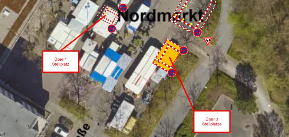 Für die Arbeiten muss ein Bereich des Parkplatzes Nordmarkt gesperrt werden. Die Sperrung ist notwendig, um die Baustelle einzurichten und die erforderlichen Notausstiege freizuhalten.