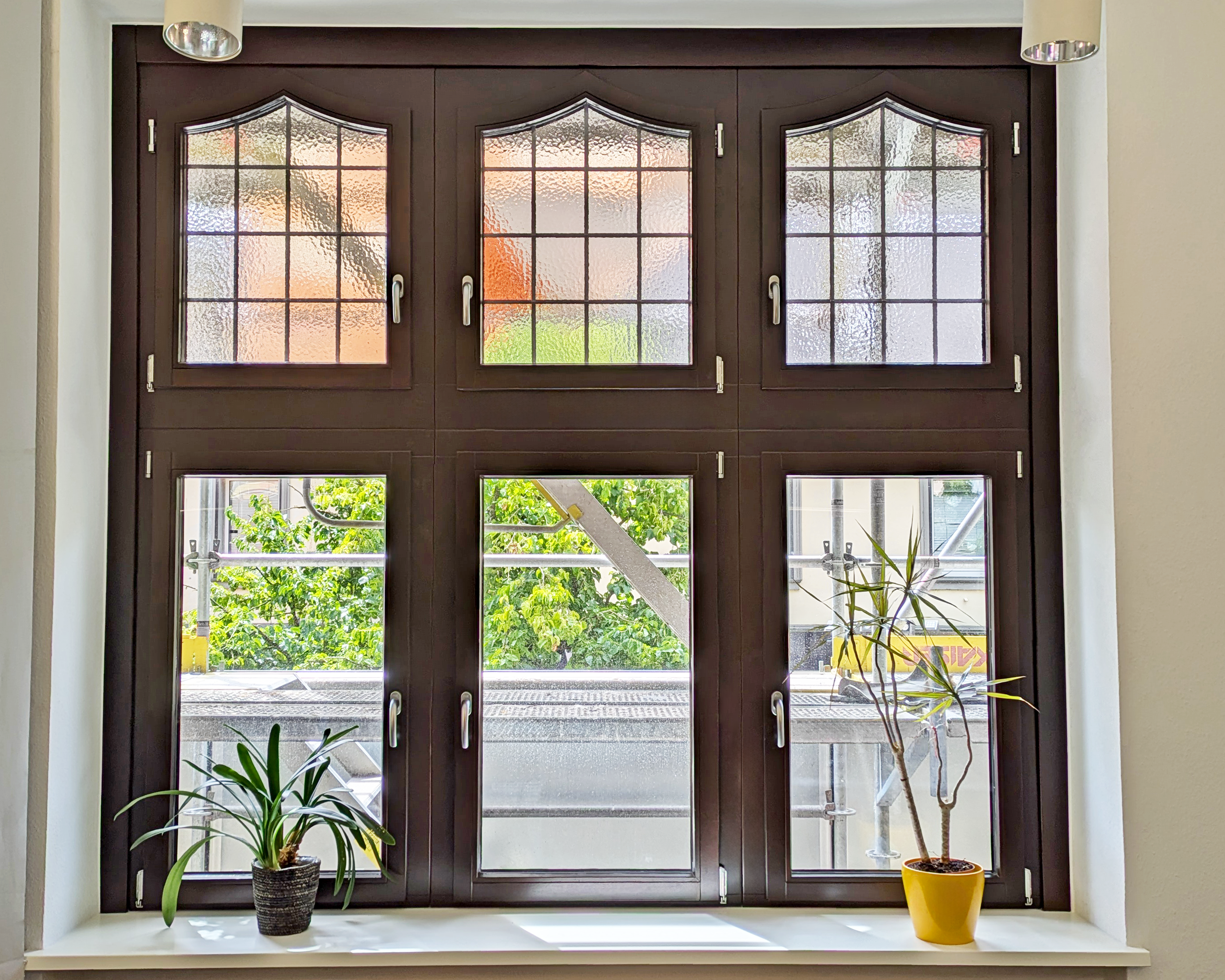 51 Holzfenster tauscht das Amt für Gebäudewirtschaft in den kommenden Monaten im Bürgerhaus aus, acht weitere werden saniert: die kleinen Buntglasfenster im Bürgersaal sowie die Kastenfenster, die vor den denkmalgeschützten und noch gut erhaltenen Ornamentglasfenstern im Alten Ratssaal liegen.