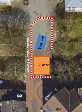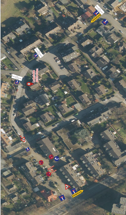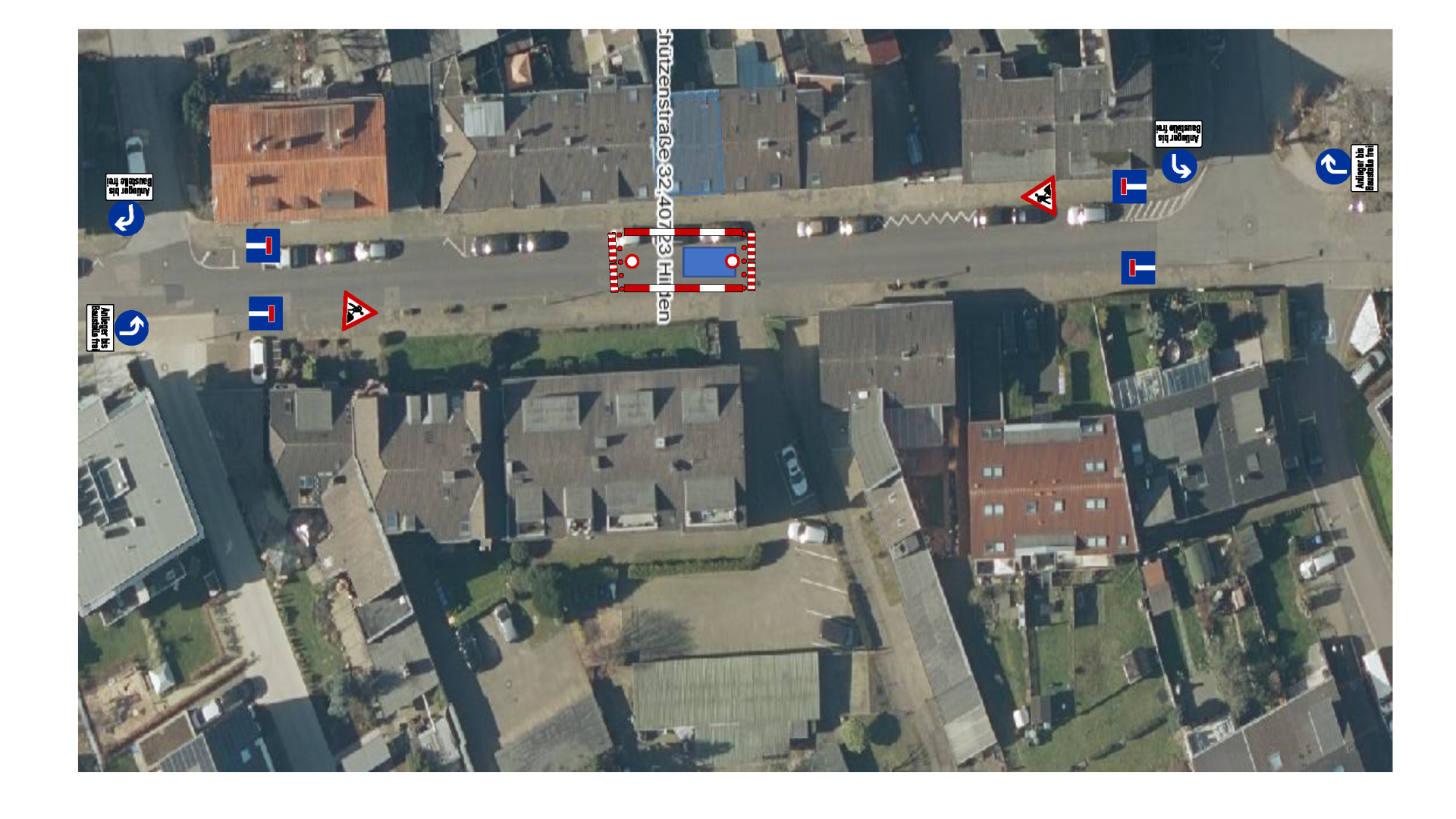 Aufgrund von Tiefbauarbeiten / Verlegung von Versorgungsleitungen wird die Durchfahrt an der Örtlichkeit Hilden, Am Eichelkamp in Höhe der Hausnummer 69 (Giebelseite) für den Fahrverkehr voll gesperrt.