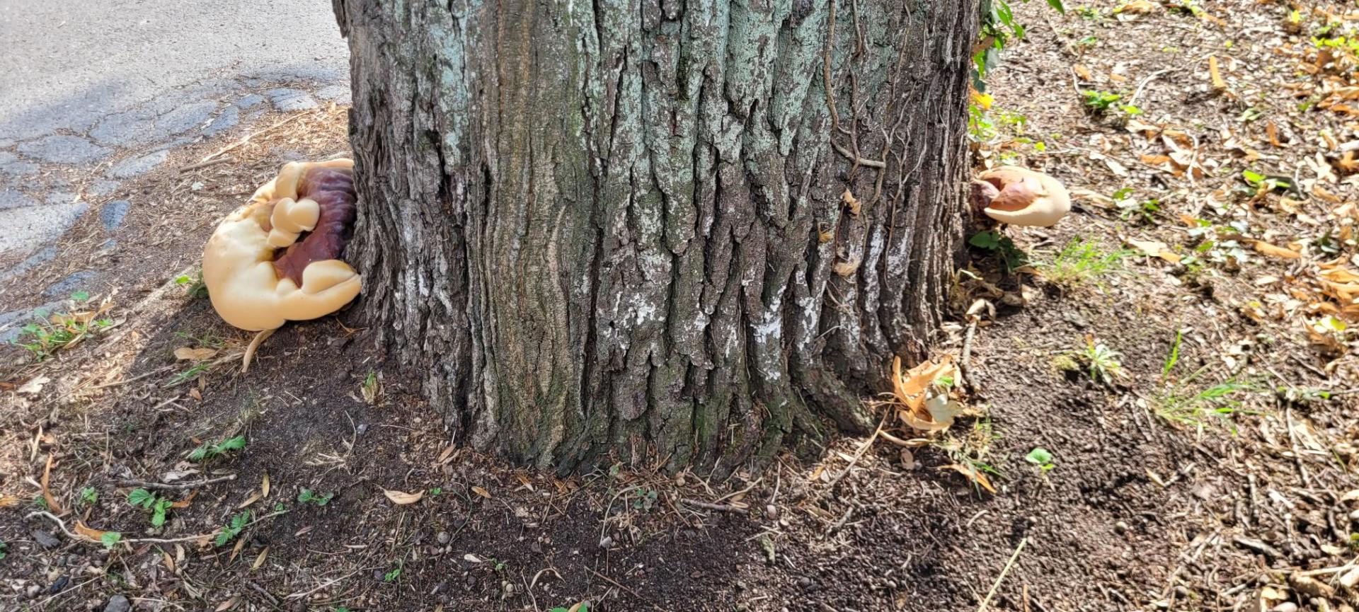 Am 01.08.2025 muss an der Zuwegung zum Prießnitzverein in Hilden-Ost eine Eiche gefällt werden. Bei den regelmäßig durchgeführten Baumkontrollen wurde festgestellt, dass sich am Stammfußbereich der Eiche und auch an einem Wurzelstrang Pilzbefall befindet.