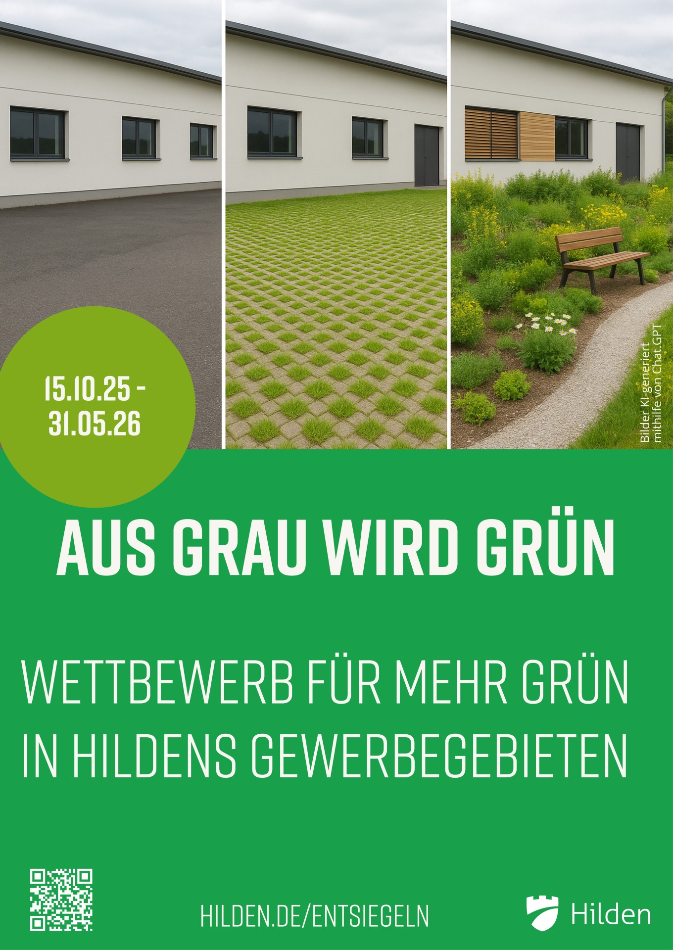 Mit einem innovativen Wettbewerb schafft die Stadtverwaltung deshalb weitere Anreize für die Begrünung und Revitalisierung. Im Rahmen des Vorhabens werden Unternehmen in Hildener Gewerbe- und Industriegebieten dazu aufgerufen, sich am ersten Entsiegelungswettbewerb zu beteiligen. Ziel ist es, Flächen von überflüssiger Versiegelung zu befreien und stattdessen zukunftsfähige, grüne Nutzung zu ermöglichen – z. B. durch die Anlage von biodiversen Wiesen, Schattenflächen oder kleinen Erholungsorten für Mitarbeitende.